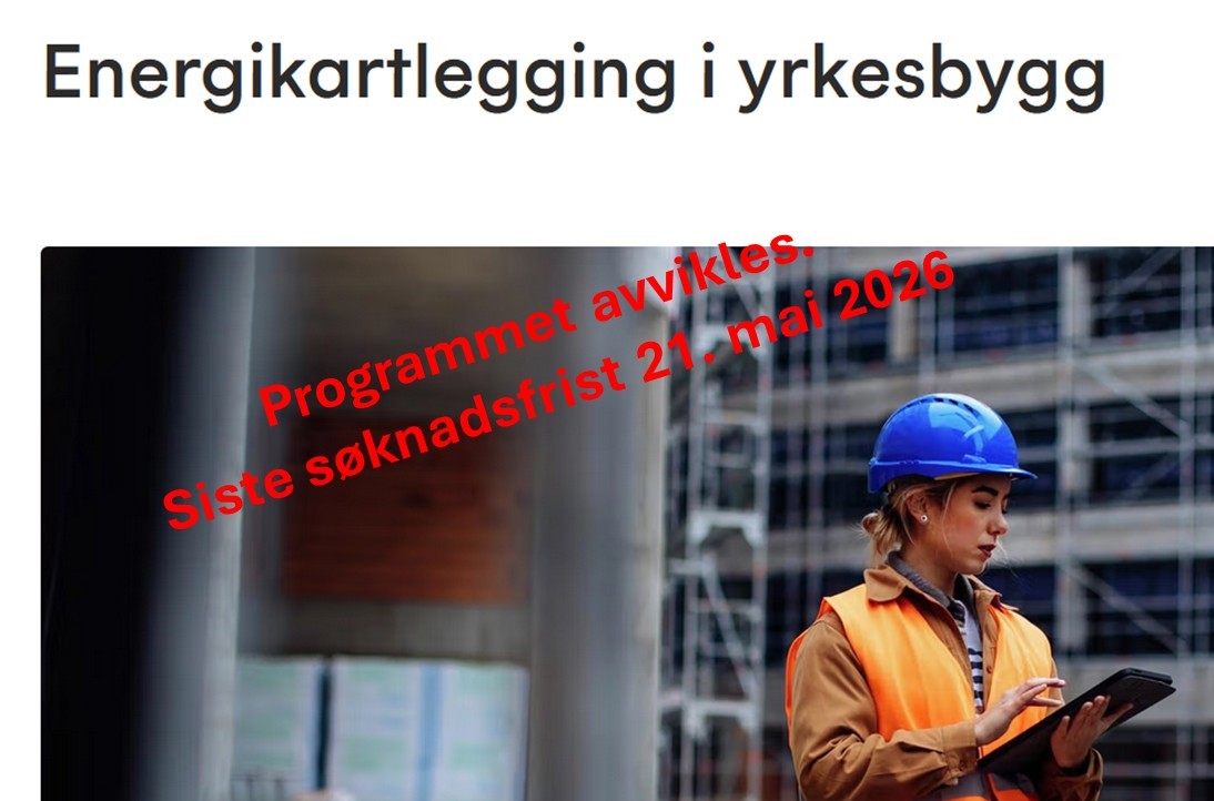 Enova har annonsert at støtteprogrammet for energikartlegging i yrkesbygg avvikles i løpet av 2026.. Dermed går en ordning som siden oppstarten i 2023 har bidratt til økt fokus på energieffektivisering i næringsbygg, mot slutten.
