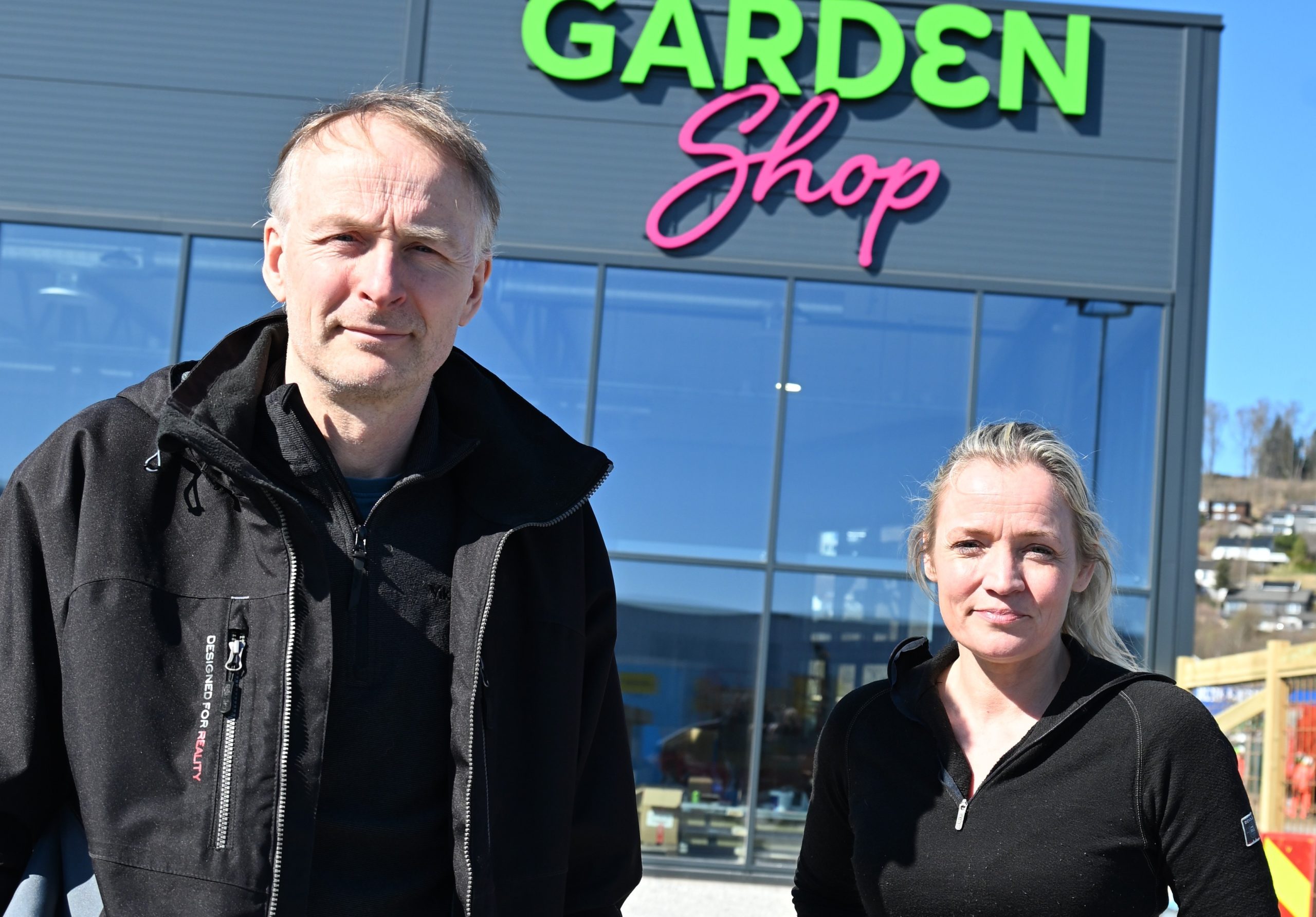 NYTT HAGESENTER: Energiberegninger er et krav ved alle nybygg, Energirådgiver Øyvind Finstad, og dagligleder Lise Gjertrud Dyrstad i Garden Shop. (Foto: Morten Stene)